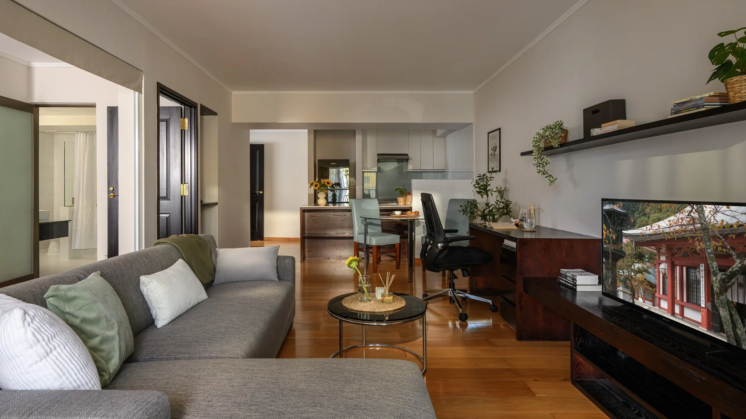 Những căn hộ tuy ở Việt nhưng phong cách rất Nhật. Trần thấp và thoáng bề ngang. Layout đơn giản và không gian sử dụng thì rất kết nối, rất ấm áp. Tòa nhà này làm mình bất ngờ vì chất lượng thi công xịn như boong ke. Mấy chục năm rồi nhưng vẫn rất mới và sạch sẽ. Bạn quản lý bảo đây sẽ là tòa nhà duy nhất sẽ chống chịu và còn lại nếu cả thành phố động đất cỡ trong phim.